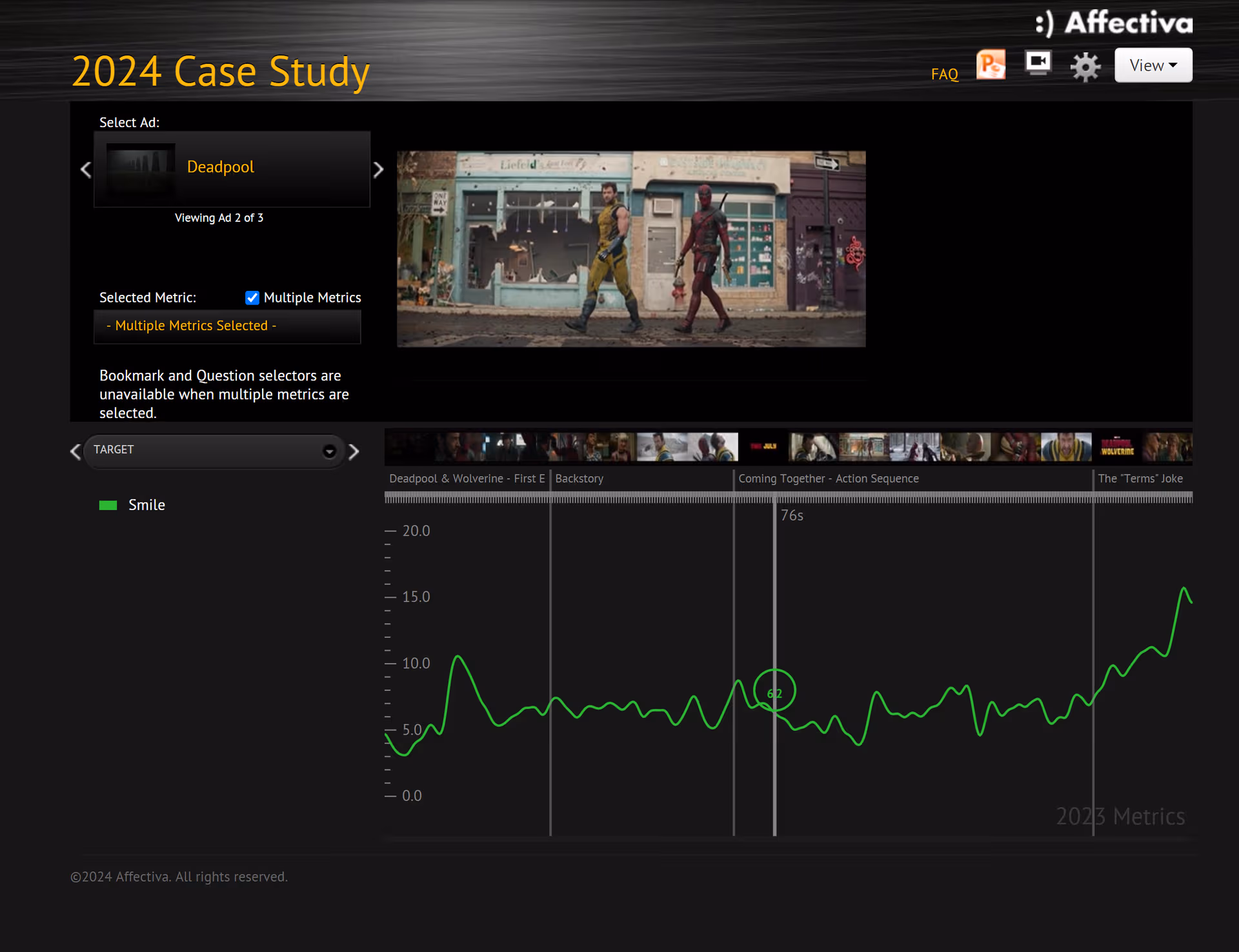 Affectiva Media Analytics helps media, entertainment, and market research agencies gain a deeper understanding of how consumers and audiences engage with their content, products and services. Today, our Media Analytics solutions are used by 90% of the world’s largest advertisers, and 25% of the Fortune Global 500 companies.