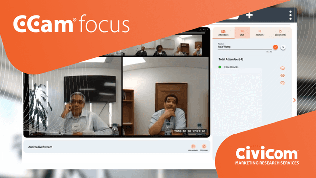 CCam® focus is a state-of-the-art recording and streaming solution for in-person and hybrid focus groups that captures views of individual respondents
