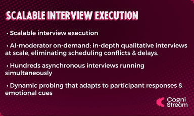 While competitors rely on “think-out-loud” formats that require participants to push a button to confirm their responses, CogniStream AI engages participants in natural voice conversations.
