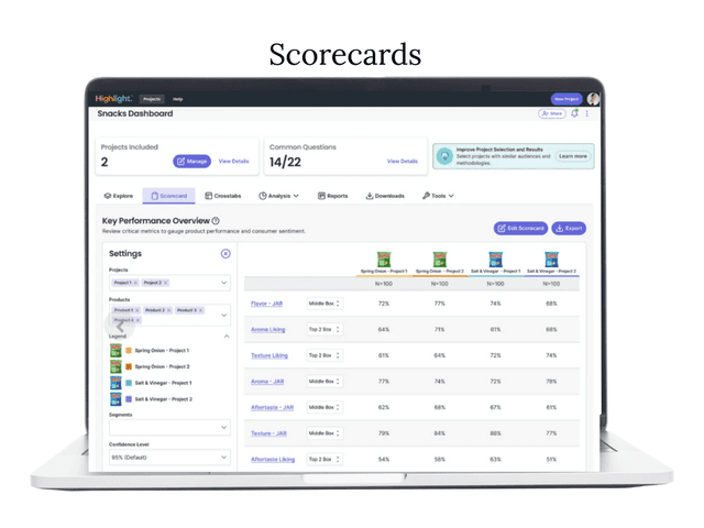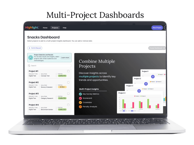 Highlight’s multi-project dashboards give a full view of product performance. Compare results across studies to spot winning patterns, track metrics over time, and make stronger, data-driven decisions with clear, actionable insights.