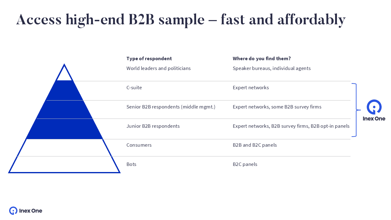 Inex One is a market leader in B2B market research through expert interviews and surveys. The platform helps private equity, market research and corporate strategy teams access expert insights fast and flexibly, and accumulate internal knowledge repositories that are searchable with AI.