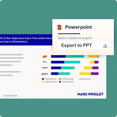 5. Share Insights with Ease: Present directly through Knit to answer immediate follow ups, or export your key insights into Powerpoint to customize and edit your presentation with ease, and help bring insights to life through the Voice of the Customer with our No-Code Showreel Editor.