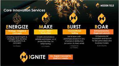 Mission Field is a global innovation, strategy & insights consultancy. We are CPG veterans who have also worked in multiple entrepreneurial ventures. We bring that combination of experience together to help CPG companies create, formulate, produce, test, and launch new products.