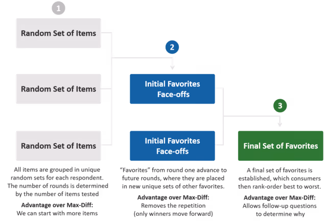 Bracket™ identifies winning benefits and features during a product development or message optimization process. The results are better than max-diff.