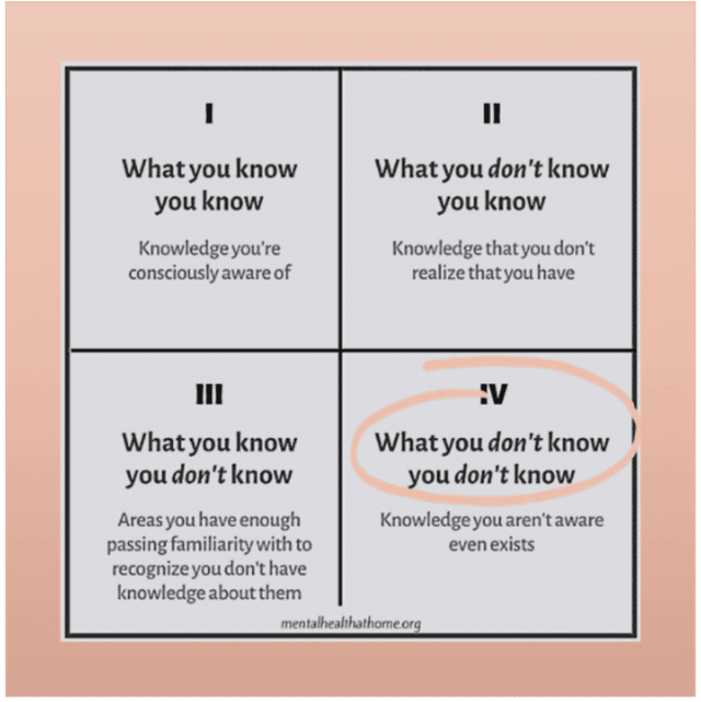 It explains the intersections between ‘What we know’ and ‘What we don’t know’. As marketeers, majority of times the objective behind any new piece of consumer work is to address ‘What you know that you don’t know’ i.e., trying to fill gaps. But one must go beyond this and look for more possibilities that lead to Discoveries.