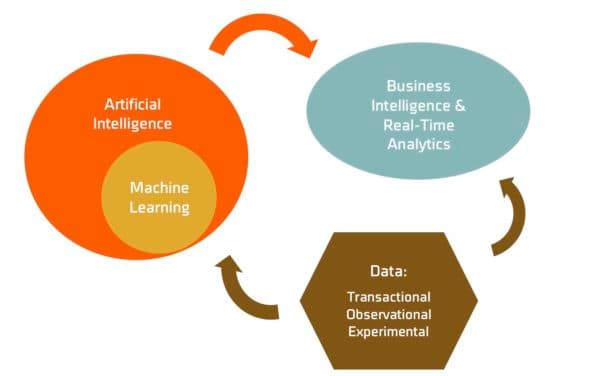 To that end, I’ve put together a few charts and tables outlining some of the fundamental building blocks of these solutions. Most MarTech offerings are powered by technologies such as Artificial Intelligence, Machine Learning, Business Intelligence, and Real-Time Analytics. I find it useful to see the interaction of these technologies with a chart like this: