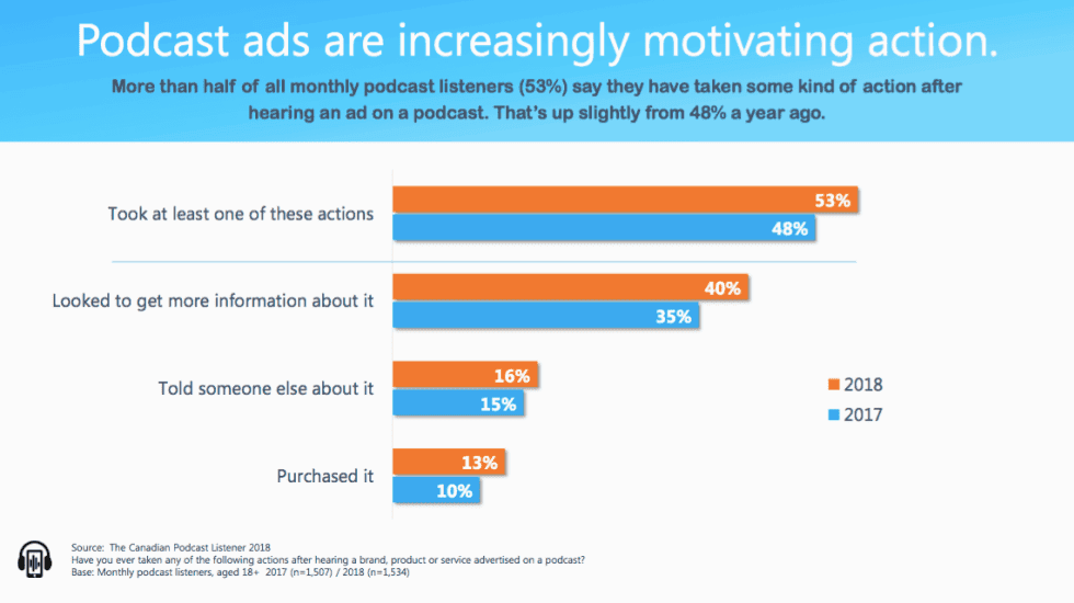 Are all brands and strategists then maximizing their audio opportunity? Companies like Dell Technologies, Hackable, and Pacific Content can shine more light on the competition. And you can view more topline highlights from Audience Insights and Maru’s Canadian Podcast Listener 2018 survey here.