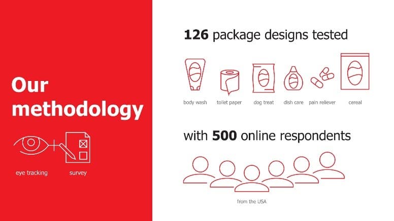 To establish what the optimal solution is currently, my team tested both Hero image solutions against the standard pack-shot across six very different product categories: cereals, dog treats, body wash, dish care, toilet paper, and pain reliever. A total of 500 US shoppers were recruited online and asked to go through the category pages on the e-commerce website they were browsing. At the same time, they were asked to click on all products they would buy while their eye movements were tracked. After that, the respondents filled in a questionnaire.