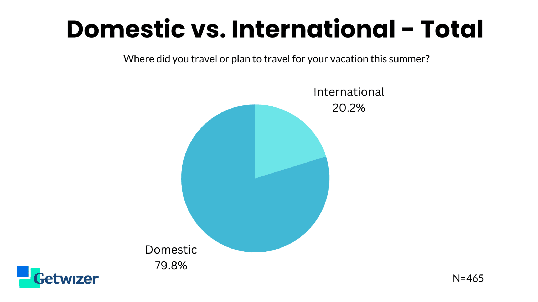 We found that domestic tourism accounted for almost 80% of vacations, with international trips making up just slightly over 20%. This is similar to post-pandemic levels. The popularity of international travel (despite the desire to travel after the lockdown) wanted, mostly likely dampened by the higher cost of foreign vacations. Those can be up to five-times more expensive, according to a report in the L.A. Times.