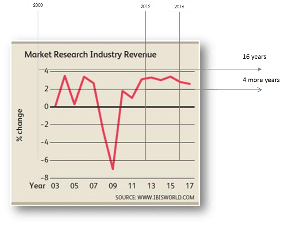 But if you’re in the market research industry, the lesson is be careful–because while you might feel safe and secure at the moment, things can change dramatically. Yes, it takes a little while for people’s habits to change—but once they start to change, your category can transform rapidly.