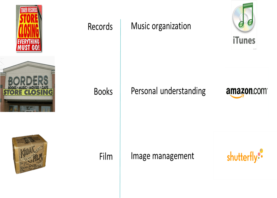 When Apple introduced iTunes, it revolutionized the music business to the point where Tower Records was left scratching its head wondering, “What the hell happened?”. Digital cameras transformed the digital imaging business to the point where Kodak went out of business, something that was unimaginable 10 or 15 years ago.