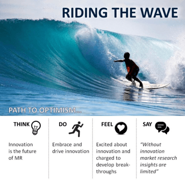 Characteristics: “Riding the Wave” describes the aspiring innovation leaders in our midst. These professionals understand that innovative techniques help them be successful by overcoming some of the challenges of traditional techniques and by providing superior insights that go beyond what is feasible with more traditional methods.