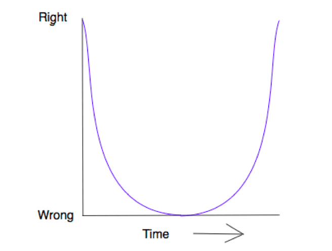 In 1855, Hermann Ebbinghaus began to study learning, particularly related to word memory. He found that there is a distinct learning curve related to word memory, whereby the words one learns first and last are remembered with the most accuracy. Later psychologists also noted this curvilinear relationship in children as they develop language. They found that as children learn a new word, they first use the word correctly, followed by a period of incorrect use when trying to find new applications and settings for the term, before finding its correct function and using the word correctly in all contexts. These developmental errors are prime examples of U-Shaped Learning, with “good performance followed by bad performance followed by good performance once again” (Carlucci & Case, 2013).
