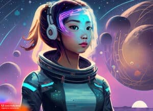 Probe: Futuristic Girl using Generative AI who is not satisfied and wondering in space 9311