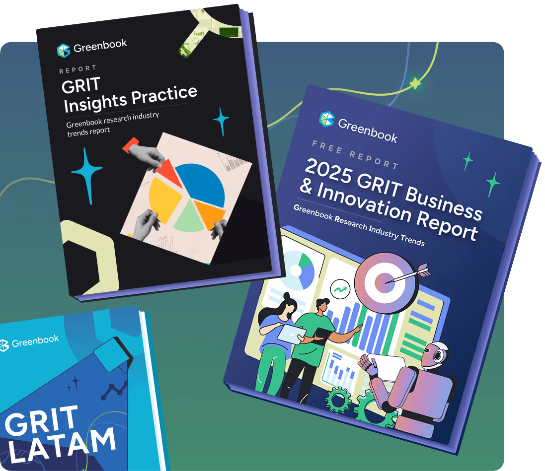 Each year, Greenbook publishes at least two GRIT Reports. The Business and Innovation Report explores the evolving industry structure and trends that shape and are shaped by insights strategy, such as innovation. The Insights Practice Report focuses on trends in approaches, methodologies, and skills that affect the success or failure of insights work.
