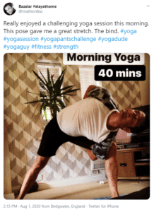 Yoga, pilates, and meditation were the most popular exercise habits of sports fans during lockdown. Other notable mentions included running and hiking, but what’s interesting is that lots of these activities were discussed in tandem with words like ‘mindfulness’ and ‘wellbeing’. Many stated that they liked to exercise in the morning as part of their daily routine.